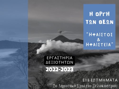 Στο πλαίσιο των Εργαστηρίων Δεξιοτήτων, με τα Ε1 και Ε2 Τμήματα του 2ου Δημοτικού Σχολείου Ξυλοκάστρου υλοποιήσαμε τα Προγράμματα "Η Οργή των Θεών: Ήφαιστος & Εγκέλαδος" & "Μικροί Επιστήμονες Εν Δράσει".